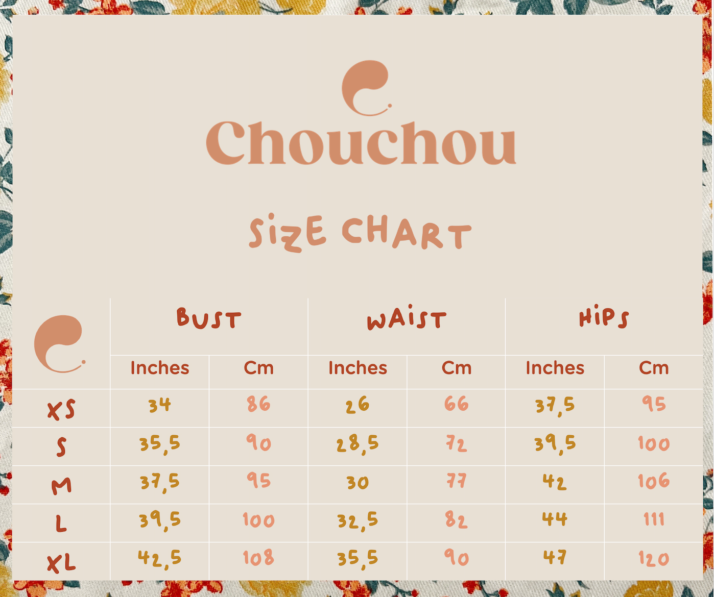 For some styles, we offer one size fits different bodies too so why don't you drop us a message at info@chouchoucouture.com and we'll offer you a free 10 minutes video measuring session.