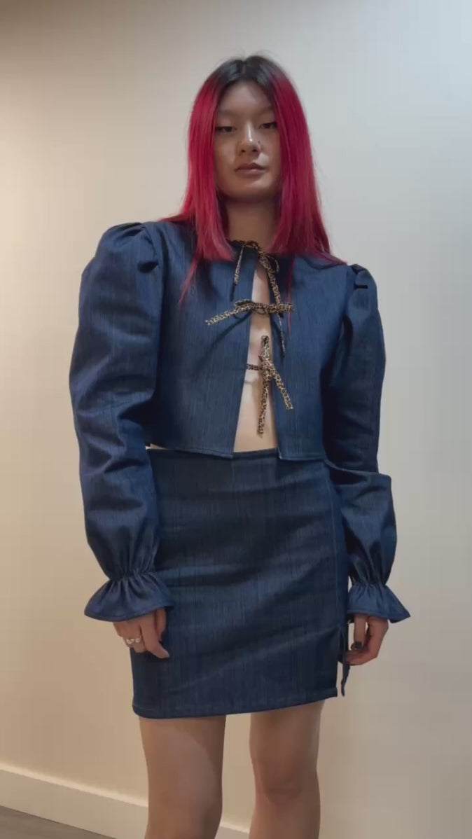 The Anna Rose Blouse Denim is a playful yet seductive addition to your wardrobe. In a rich indigo hue, this blouse features leopard cotton bows on the front, adding a cheeky touch. With dramatic puff sleeves and elasticated wrists, it’s the perfect balance of chic and flirty, while the versatile design lets you style it in two different ways as you can wear the bows on the back too. Whether you're heading off on a special trip or gearing up for a night out, this blouse ensures you’ll always look super cute. Sustainable, stylish, and oh-so-tempting—make the Anna Rose Blouse Denim your new BFF.